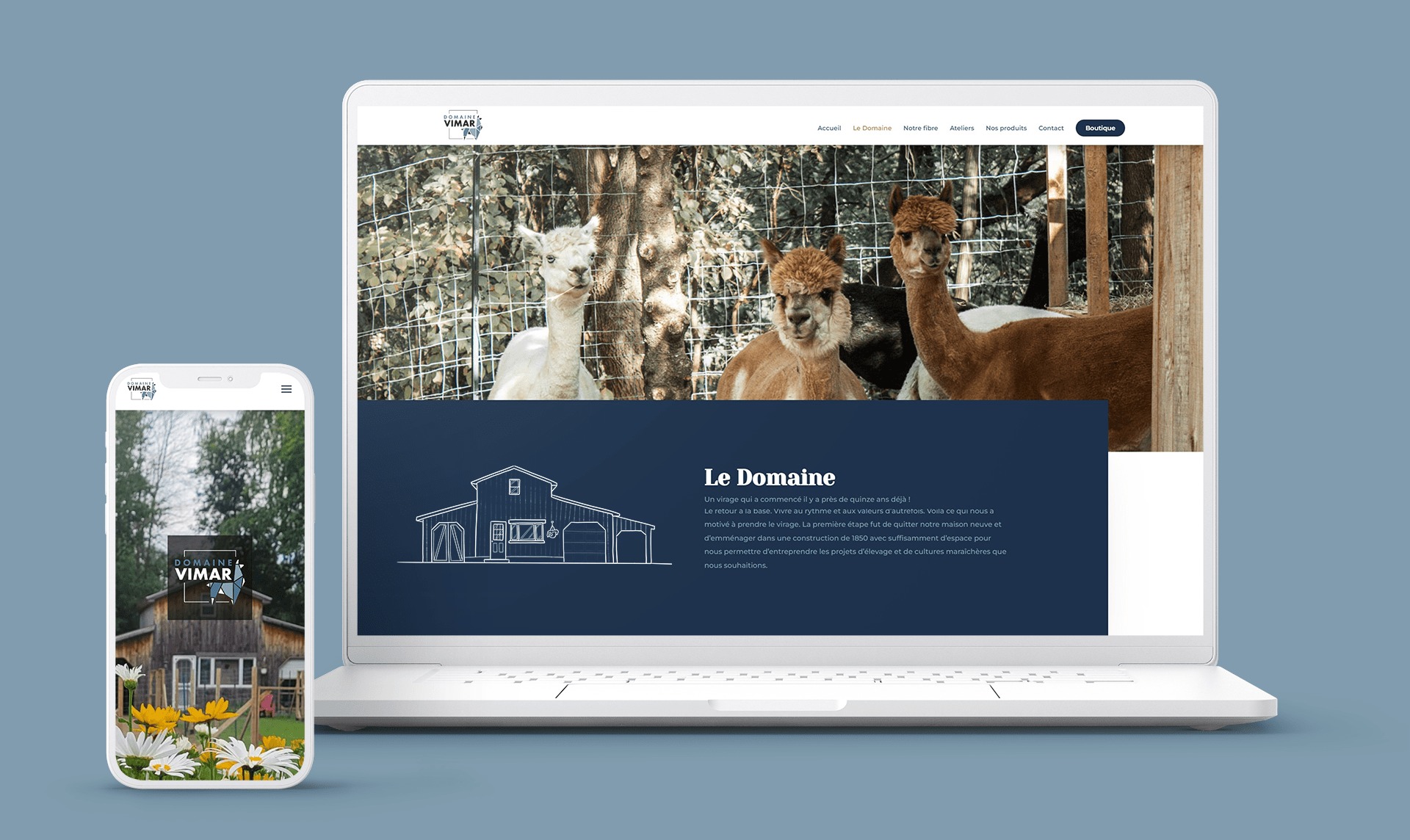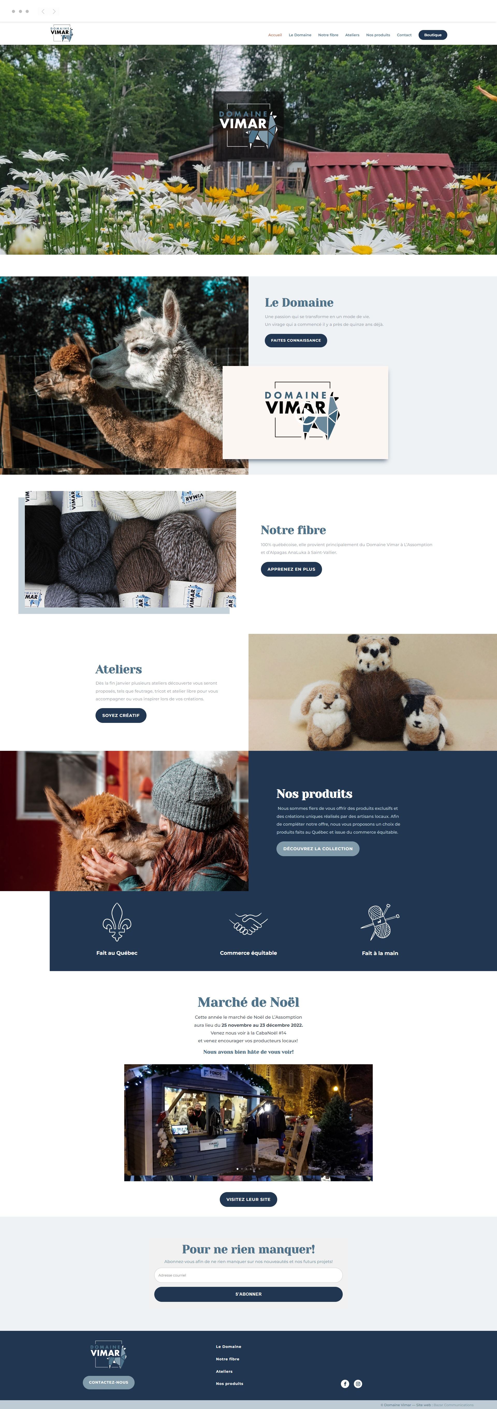 Mandat: Réalisation d'un site web simple permettant aux clients d'en apprendre plus sur le Domaine Vimar, mais aussi sur le processus de transformation de la fibre et les différents services offerts par l'entreprise familiale.